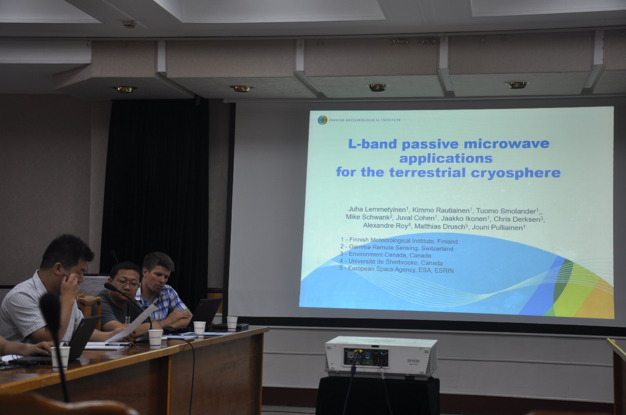 Juha Lemmetyinen博士的报告主要介绍了L波段被动微波遥感SMOS卫星数据在分析积雪和寒区地表冻融状况变化监测方面的应用及其在芬兰冰冻圈科学研究中的应用。邱玉宝博士介绍了地球观测组织寒区观测计划(GEOCRI)针对全球受冰冻圈影响的生态和环境脆弱区域进行的加强研究、业务观测设施、区域合作项目、国际合作的一些动态。