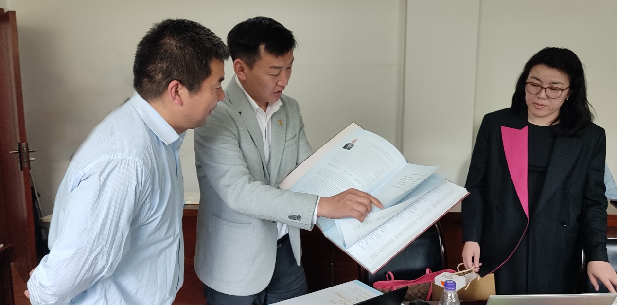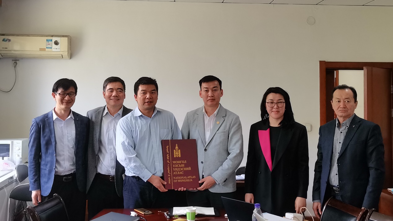 Avirmed Dashtseren所长向我站介绍并赠送了他们最新出版的《蒙古国国家地图集》。