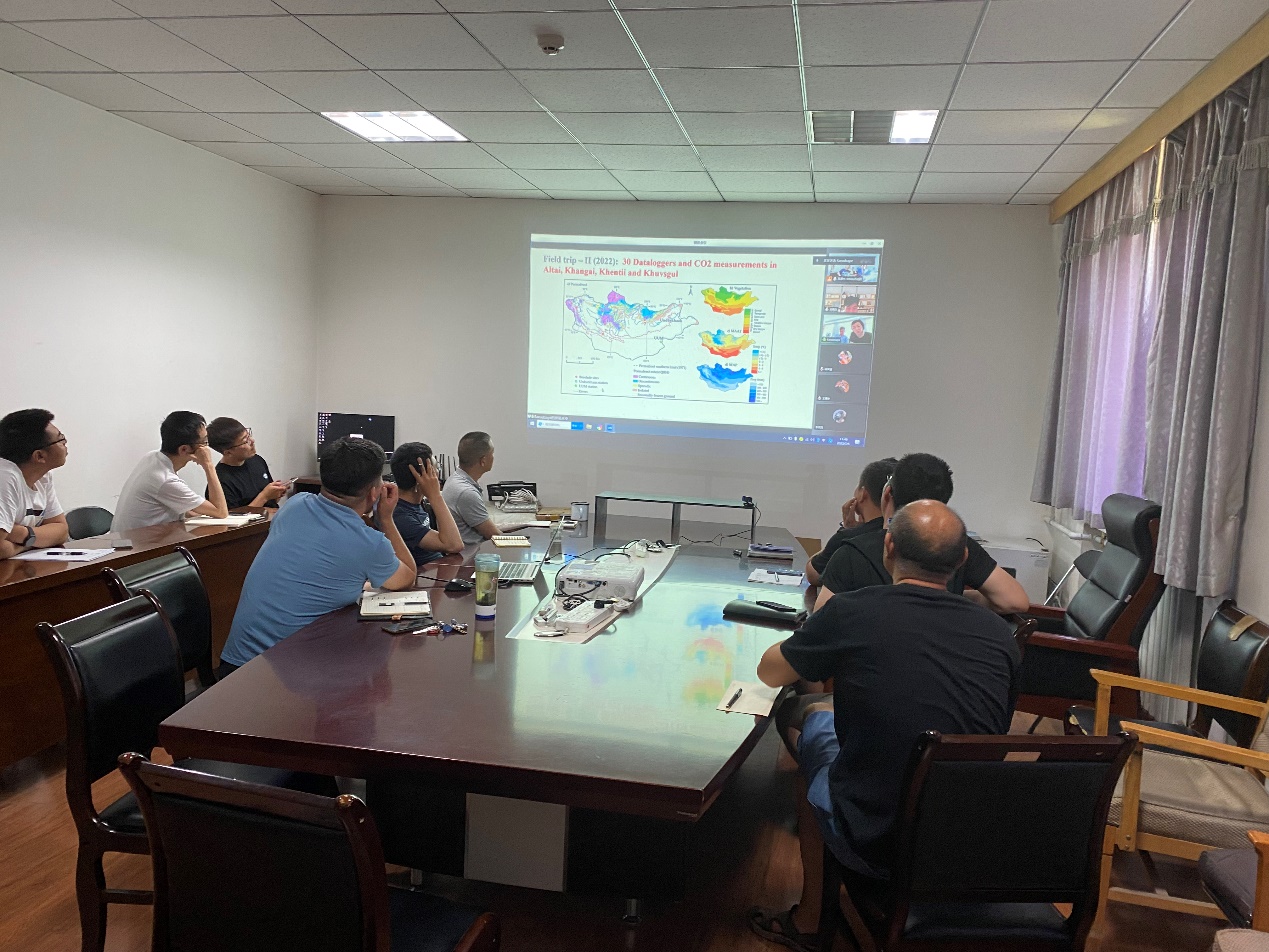研讨会期间吴通华研究员和吴晓东研究员分别介绍了各自负责的国家自然科学基金委国际合作项目的进展情况,并和蒙方讨论了在蒙古国多年冻土区进行自动气象站和地表温度观测仪器布设的计划,以及双方亟需开展观测数据共享的情况。蒙古科学院地理与地球生态研究所Saruulzaya Adiya研究员介绍了本年度蒙古多年冻土野外考察情况以及开展的相关研究工作。本次会议双方团队针对蒙古区域多年冻土变化和监测展开了深入的讨论,下一步工作将在论文发表、学者交流、项目申请等方面展开更深入的全方位合作,定期召开合作研讨,积极推动中蒙之间多年冻土研究的学术交流。