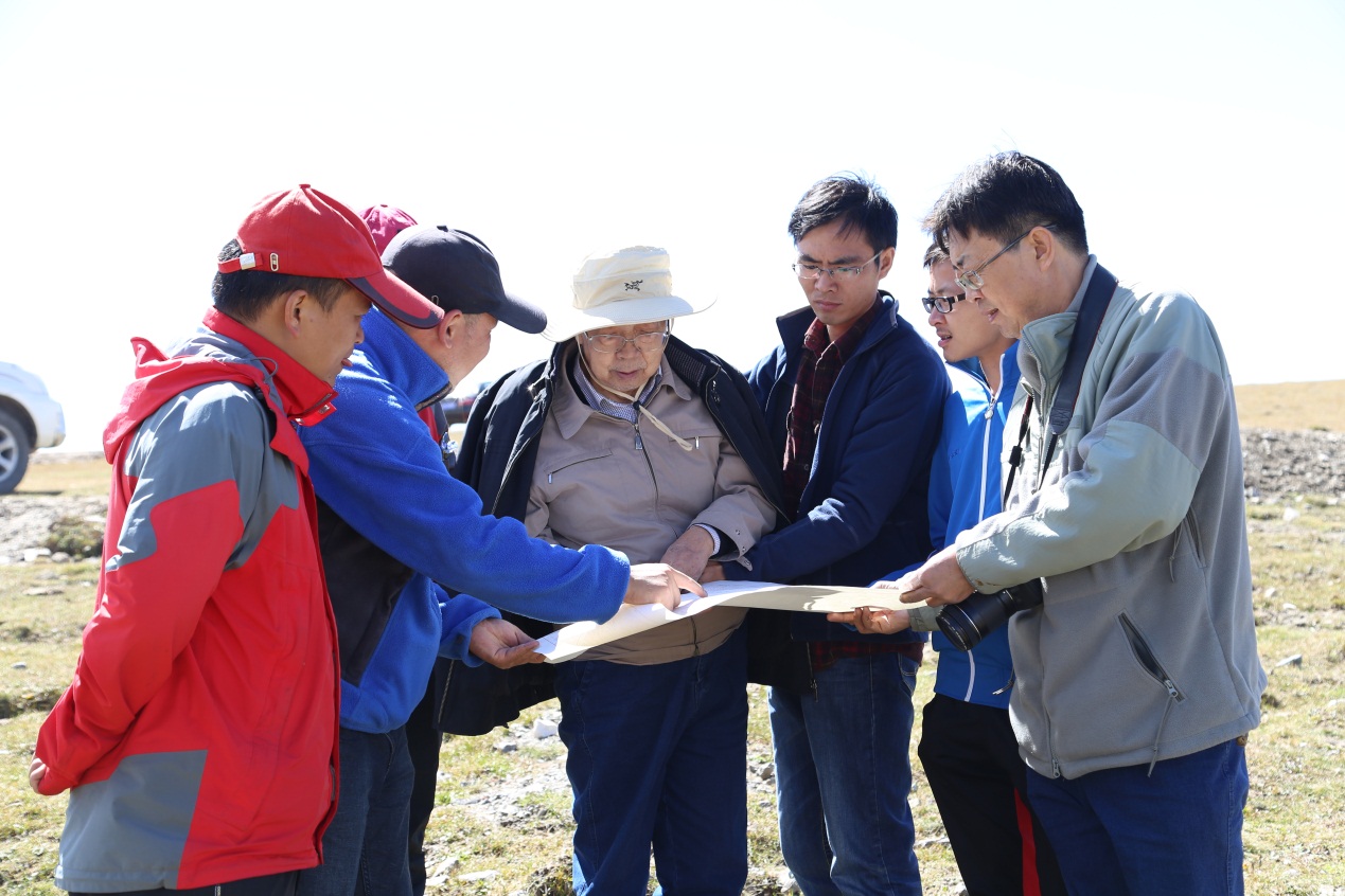 上世纪80年代,李吉均院士对马啣山地区冰川遗迹、冰缘地貌环境进行过多次深入的考察,首次确认了陡林沟冰川遗迹,并与国内外学者进行了广泛的交流和讨论。2014年9月18日,80岁高龄的李吉均院士在兰州大学资源环境学院院长张廷军教授及部分教师的陪同下,再次登顶马啣山,视察了我所的多年冻土观测基地,对我所选择马啣山作为多年冻土长期观测基地给予充分的肯定。李吉均院士和张廷军院长一行同时考察了马啣山的植被、流域水文、夷平面、古冰川遗迹及冰缘地貌,并希望与我所合作,把马啣山多年冻土观测基地建设成为一个兰州大学本科生、研究生教育的野外教学、实习和科研综合平台。我所有关科研人员就马啣山多年冻土特征、分布范围及监测内容向李院士一行进行了详细介绍,并陪同李院士考察了陡林沟冰川遗迹。
