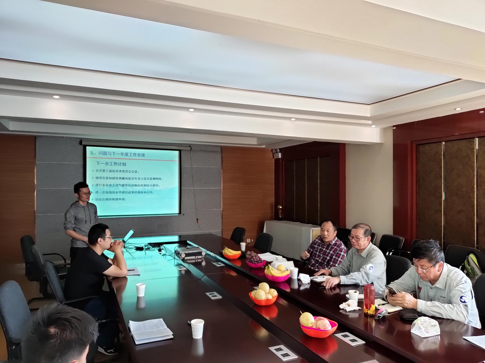 野外考察结束后,各位到访专家在格尔木站会议室与在站工作人员以及研究生进行了深入的讨论和交流。岳广阳博士对格尔木站的台站建设、科研管理、研究方向及成果等做了详细的介绍。极地中心副主任徐韧肯定和赞杨了我站的台站建设运营以及科研工作,并希望今后在台站建设、科研管理等方面多多交流交换意见。同时,潘增弟研究员、李院生研究员表示希望今后能够在冰冻圈领域增进合作,加强学术交流,培养优秀人才。