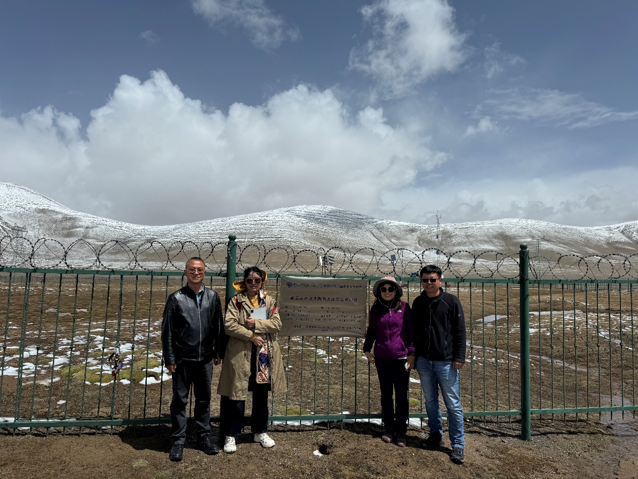 在乔永平副站长的陪同下,黄晓东教授一行考察了我站布设在青藏高原多年冻土北界西大滩综合观测场。乔永平副站长介绍了综合观测场内的气象、涡动、活动层和冻土监测设备,并且欢迎黄晓东教授团队将该综合观测场选作其负责课题研制监测仪器设备的野外测试应用站点。