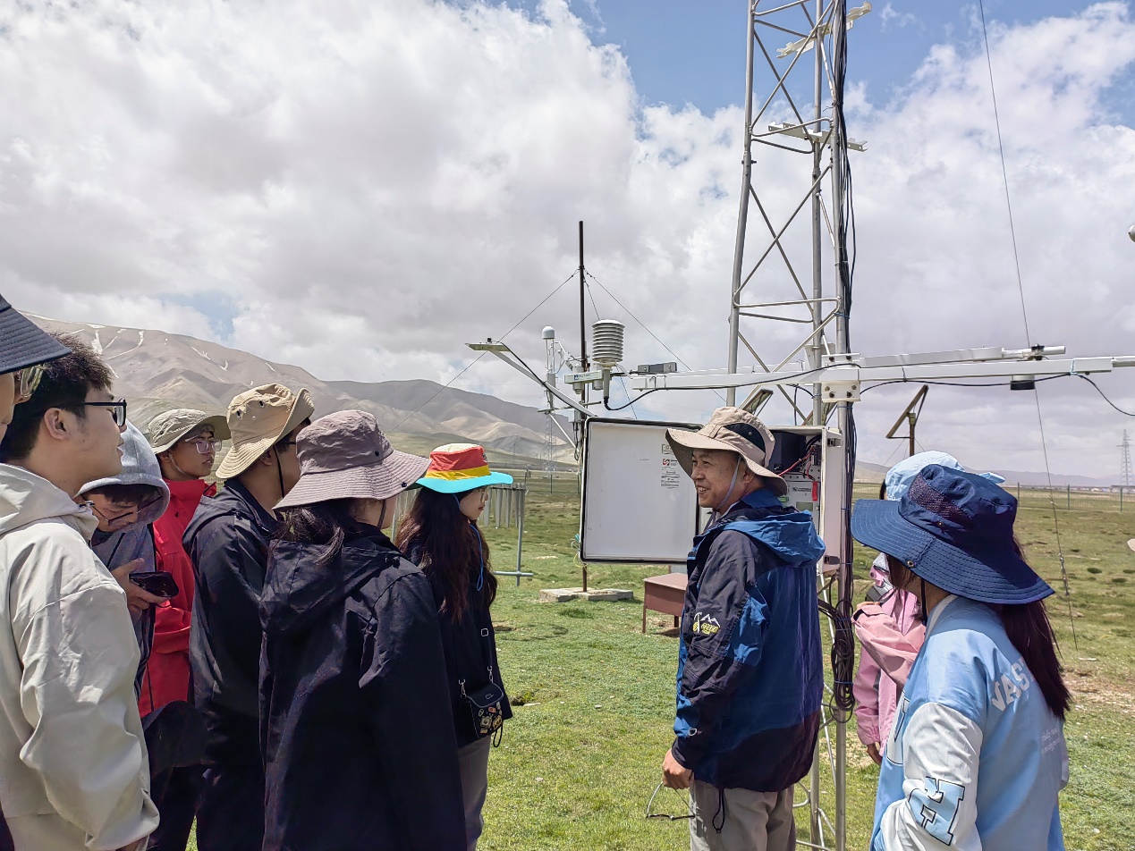7月24日,乔永平副站长带领地学行知会社团一行参观了我站布设在青藏高原多年冻土分布北界的西大滩综合观测场,使同学们了解并学习了观测场的地面气象、地表活动层和多年冻土水热观测设备。