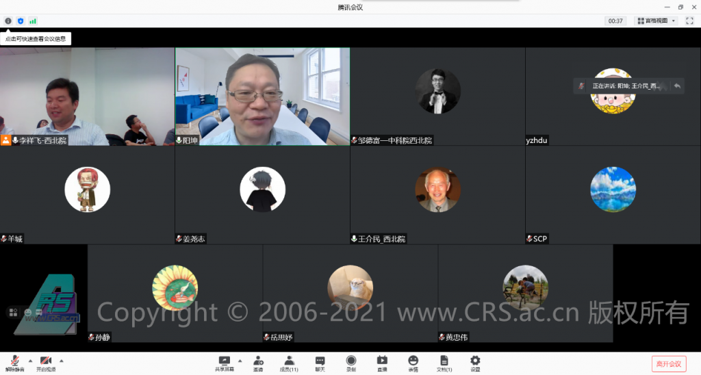 2021年6月24日,清华大学阳坤教授课题组与我站科研人员联合召开了冻土环境模拟学术研讨会。会议采用线上形式,共计包括6个报告和1个特邀报告。我站胡国杰、杜宜臻和陈杰分别做了“多年冻土活动层水热传输机制及其模拟”、“活动层土壤热参数研究”以及“冻土区地表特征的遥感应用”的学术报告。阳坤教授课题组岳思妤、姜... 2021年6月24日,清华大学阳坤教授课题组与我站科研人员联合召开了冻土环境模拟学术研讨会。会议采用线上形式,共计包括6个报告和1个特邀报告。我站胡国杰、杜宜臻和陈杰分别做了“多年冻土活动层水热传输机制及其模拟”、“活动层土壤热参数研究”以及“冻土区地表特征的遥感应用”的学术报告。阳坤教授课题组岳思妤、姜...
