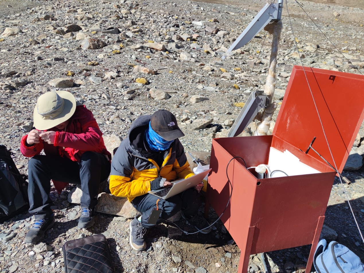 2023年9月19-24日,我站朱小凡副研究员和唐问悉博士研究生、香港中文大学孙章宇博士研究生、中国地质大学兰圣涛博士研究生一行4人完成了青藏公路沿线惊仙谷石冰川野外调查、数据采集和仪器维护,以及青藏公路沿线区域近地表土壤温度和地面形变数据采集和维护工作。