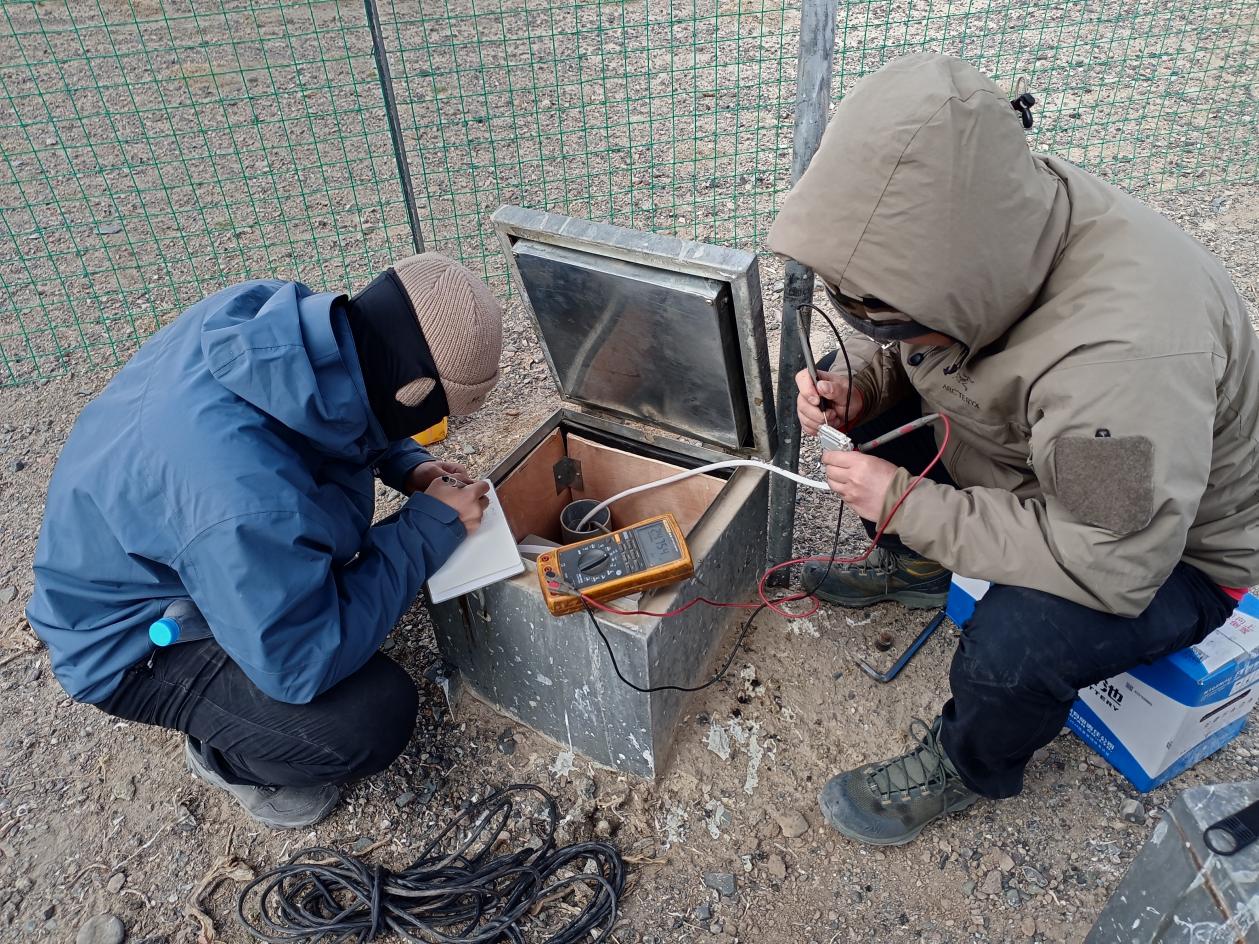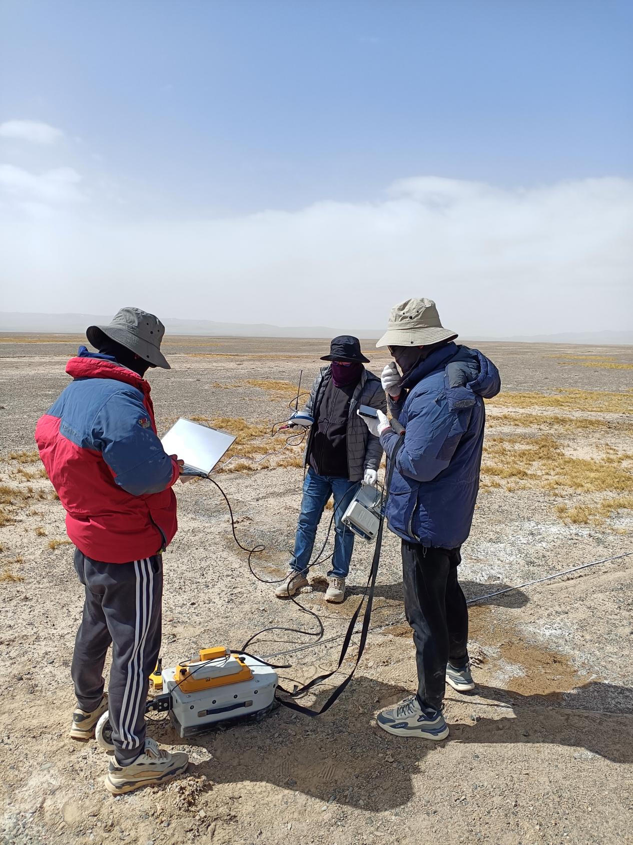 2025年5月10日至5月14日,我站乔永平副站长、朱小凡副研究员、刘广岳工程师、研究生宫鹏、唐问悉和赵晋彪等十余人,在青藏高原阿尔金地区开展了多年冻土调查和仪器维护工作,具体包括:(1)收集地面气象和活动层水热监测系统数据;(2)采集12个冻土地温钻孔数据,并维护相关观测仪器;(3)布设HOBO近地表温度监测探头和安装地面形变仪器一套;(4)针对典型地面形变和多边形区域开展了无人机调查;(5)针对典型冻土地貌开展电磁法地球物理调查;(6)采集阿雅克库木湖南、北两岸水样和典型区域的土壤样品等。此外,我站还配合中国科学院空天信息创新研究院方广有研究员团队完成了类火星冻土地貌区域探地雷达数据采集以及火星车载荷实验。