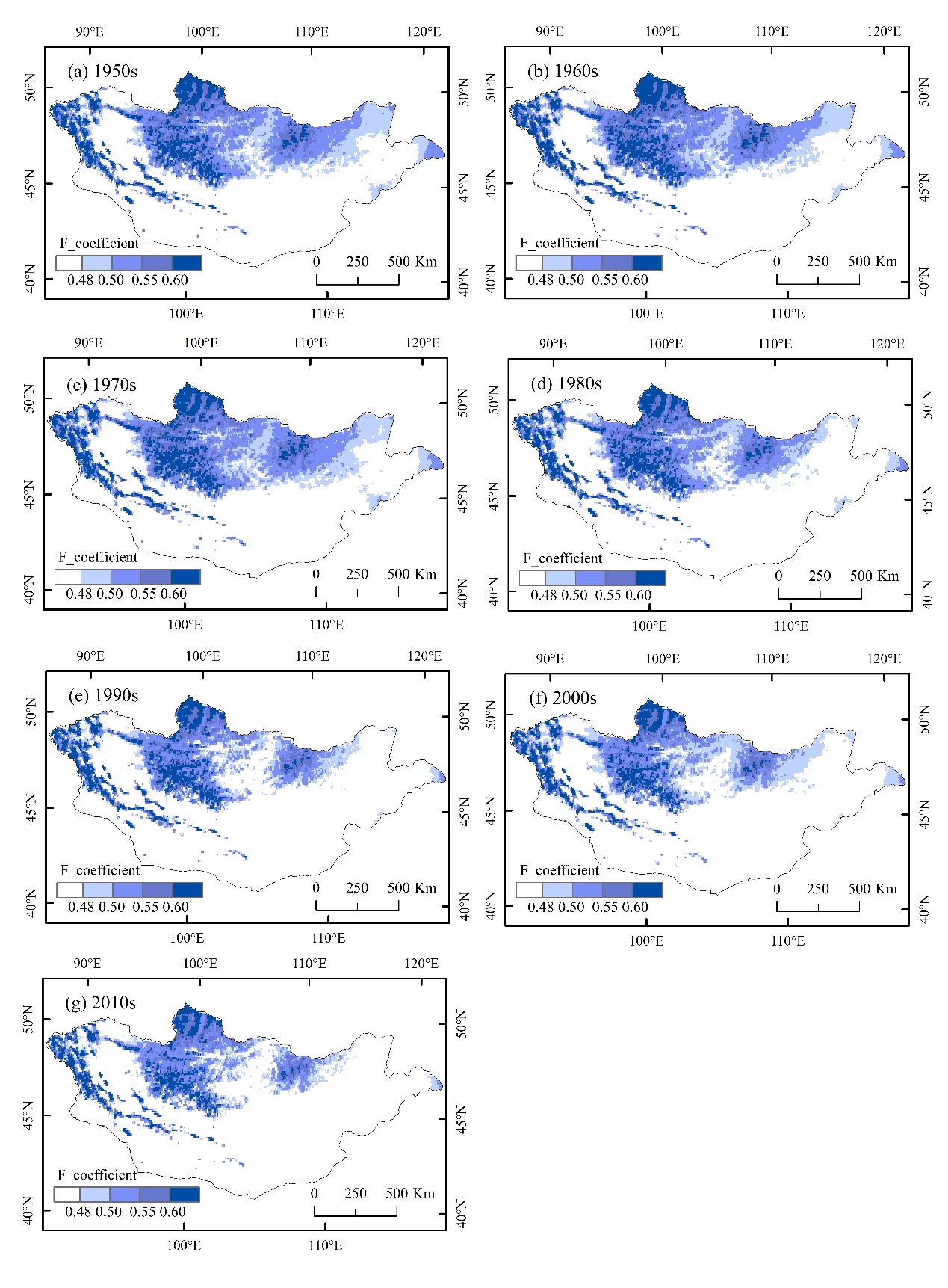 在气候变暖的背景下,全球多年冻土发生了不同程度的退化。蒙古多年冻土主要分布在高纬度-多年冻土分布的南缘,易受气候变化的影响。尽管当前针对蒙古多年冻土的制图研究已取得了一定进展,但大多是基于有限的钻孔资料和区域调查数据开展的,时间序列较短、空间分辨率较低,且模拟方法的不确定性较大。因此,全面整合历史和当前的多年冻土监测数据,充分利用再分析数据资料输入多年冻土空间分布模型开展高精度、长时间序列的蒙古多年冻土变化制图研究十分必要。