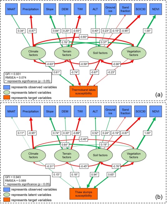 图4 基于结构方程模型的热喀斯特灾害易发性主控环境因子分析