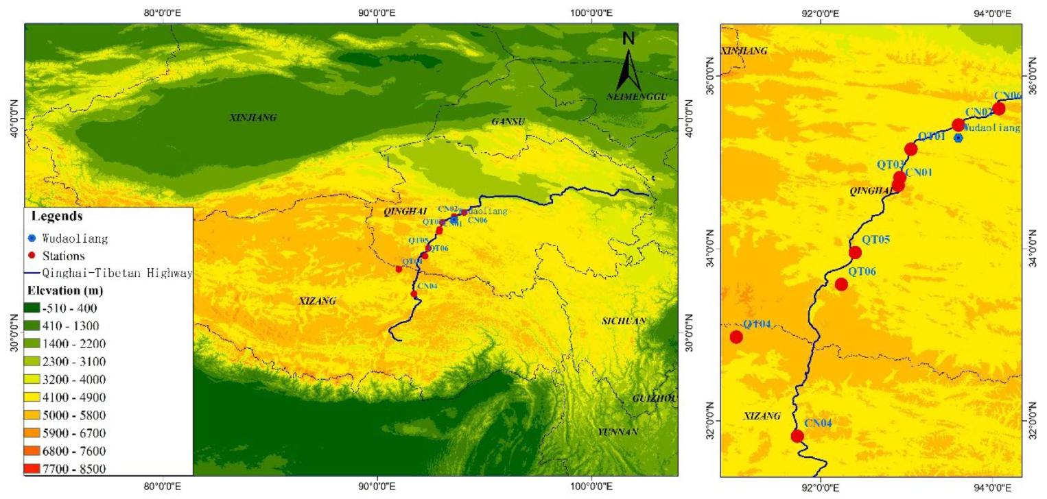 多年冻土受全球变暖影响显著,其活动层厚度(ALT)变化对生态和水文系统意义重大。青藏高原是世界上最高且最广泛的多年冻土区,青藏公路沿线的多年冻土变化对区域生态、工程和社会经济发展影响深远。近期,我站关于青藏高原多年冻土ALT的研究取得重要成果,研究剖析了2004-2023年间青藏公路沿线ALT的动态变化与区域差异,对理解气候变暖下的生态与工程问题意义重大。