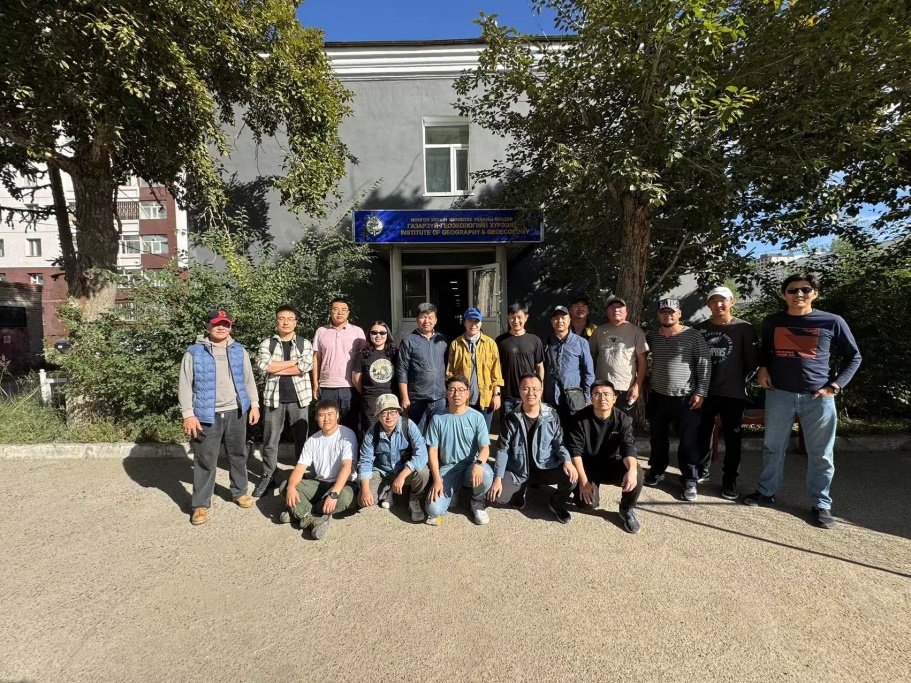 2024年9月5日至9月19日,我站再次与蒙古科学院地质与地理研究所科研人员开展联合考察,行程超8000公里,初步完成了蒙古国气候与多年冻土综合观测网络建设(图5和图6)。此次考察中方和蒙方团队共计20多人参加,分成2个小组开展野外工作。第一小组成功完成了位于杭爱山脉南部的Huush站点以及阿尔泰山脉的Gobi-Altai、Tsetseg、Bulgan、Buraat和Jaramtai站点的气象观测站和活动层水热观测场的建设工作,并在研究区域内增设了24处地面温度观测站点。第二小组成员主要沿2023年调查路线,对已建立的5个气象和活动层水热观测场进行了数据收集和设备维护,并收集了已布设的48个监测点为期一周年的地面温度数据,考察同时在沿线多年冻土区采集了超过120个表层土壤样品。考察结束后,我站吴通华研究员和吴晓东研究员访问了蒙古科学院地质与地理研究所并与Dashtseren Avirmed所长和多年冻土研究室Saruulzaya Adiya主任进行了座谈,双方就下一步即将开展的冻土观测研究合作进行了深入讨论和交流(图7)。