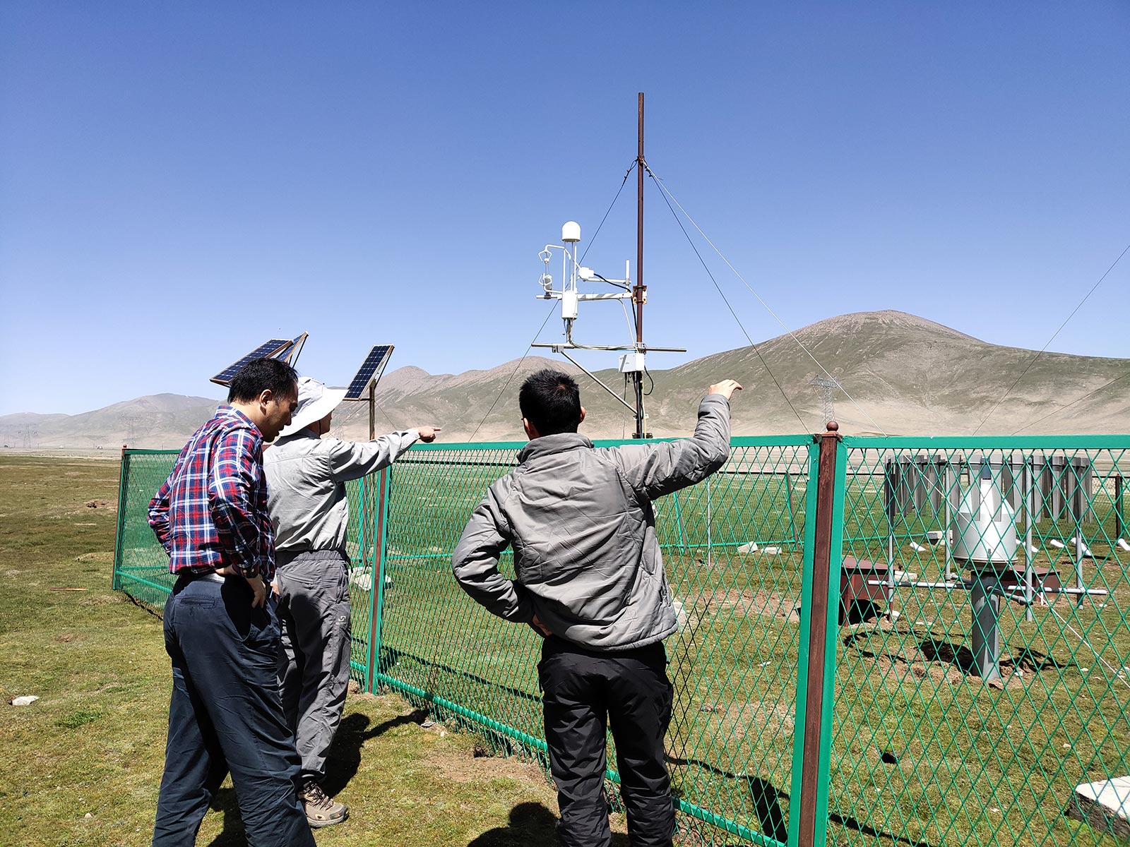 在我站科研工作人员岳广阳和张钰鑫博士的陪同下,徐韧一行首先实地参观和考察了青藏公路沿线的部分观测场地,对我站在青藏高原观测场地及观测站点的建设和维护工作给予了充分的肯定。