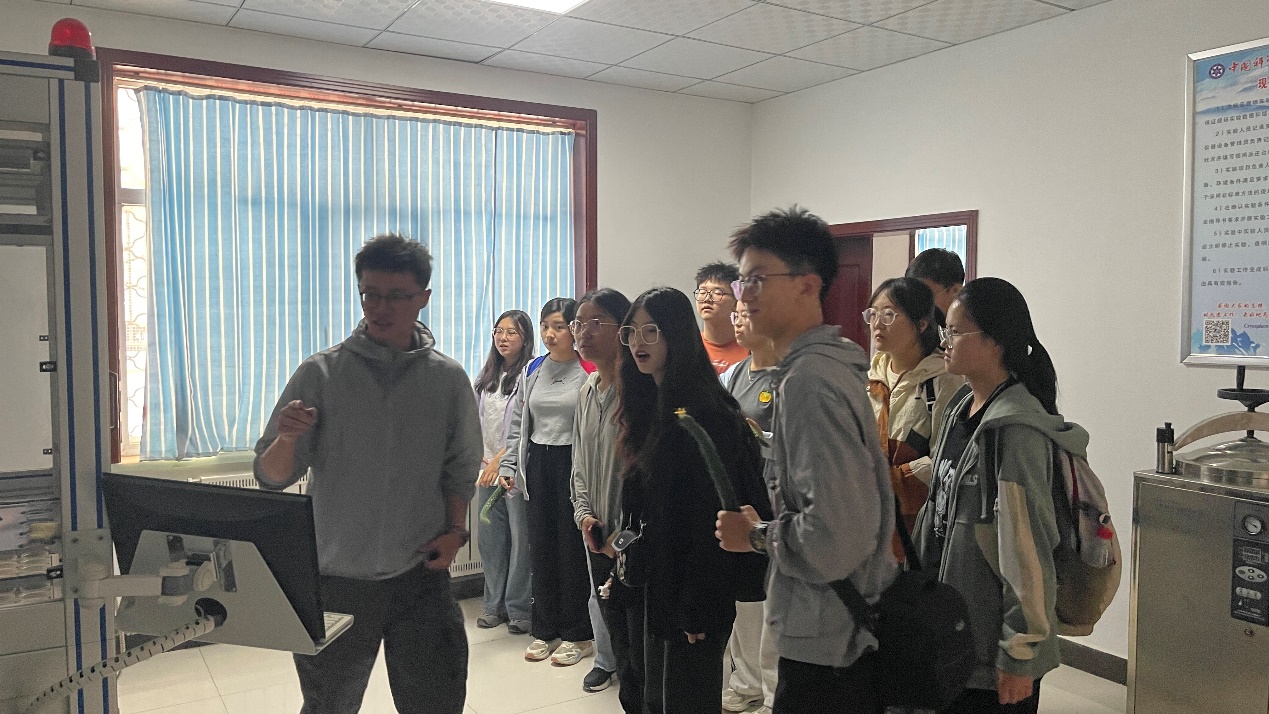朱小凡副研究员向地学行知会社团介绍我站土壤实验室仪器设备