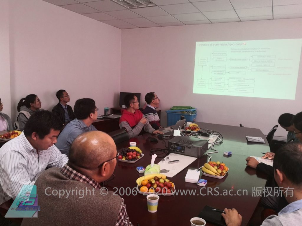 2020年10月29日,上海师范大学哈斯巴干研究员于2020年10月29日来我站进行学术交流,我站部分职工和研究生参加了此次交流。特别助理研究员陈杰和博士研究生郝君明分别作了有关InSAR沉降监测和热融滑塌的报告,哈斯巴干研究员就热融滑塌的野外监测方法和遥感手段的应用,对我站部分科研人员已有的相关工作进行了指导和建议... 2020年10月29日,上海师范大学哈斯巴干研究员于2020年10月29日来我站进行学术交流,我站部分职工和研究生参加了此次交流。特别助理研究员陈杰和博士研究生郝君明分别作了有关InSAR沉降监测和热融滑塌的报告,哈斯巴干研究员就热融滑塌的野外监测方法和遥感手段的应用,对我站部分科研人员已有的相关工作进行了指导和建议...