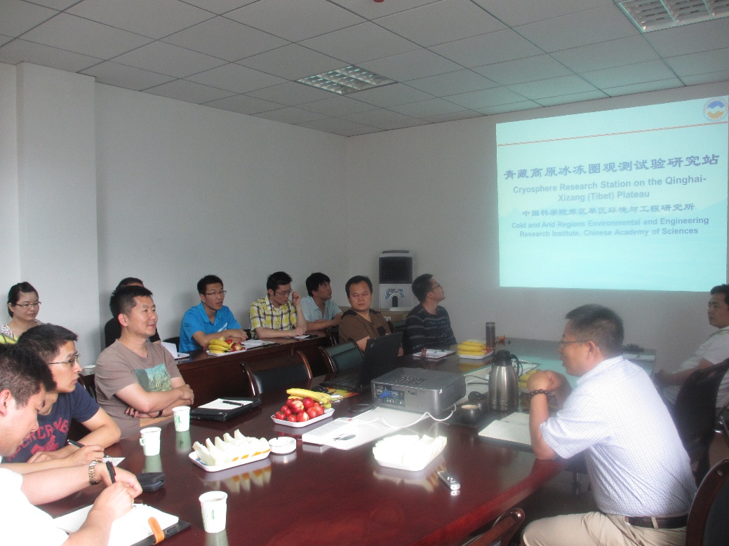 8月6日-8日,中国科学院青藏高原研究所汪涛和汪诗平研究员一行4人来我站访问交流。赵林站长介绍了我站近年来的工作情况,我站相关科研人员和研究生共计20余人参加了交流会。双方针对青藏高原多年冻土区的碳储量、碳循环问题进行了深入讨论,对下一步在青藏高原多年冻土区开展合作研究工作进行了商讨。随后,汪涛和汪诗平... 8月6日-8日,中国科学院青藏高原研究所汪涛和汪诗平研究员一行4人来我站访问交流。赵林站长介绍了我站近年来的工作情况,我站相关科研人员和研究生共计20余人参加了交流会。双方针对青藏高原多年冻土区的碳储量、碳循环问题进行了深入讨论,对下一步在青藏高原多年冻土区开展合作研究工作进行了商讨。随后,汪涛和汪诗平...