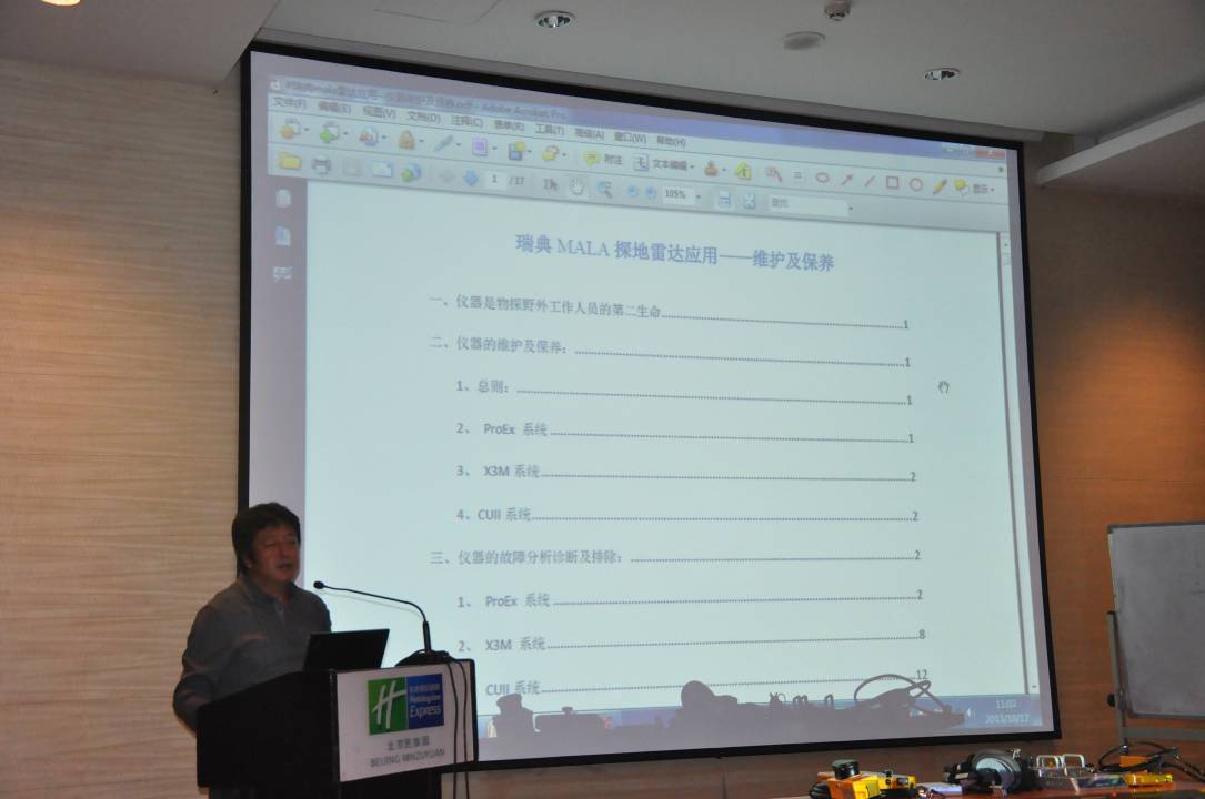 2013年10月16日至18日,本站技术人员在北京参加了”2013年瑞典MALA探地雷达技术交流会”。此次参会的重点目标是对探地雷达理论知识、数据处理软件(Reflexw)应用、雷达系统的硬件保养及维护的进一步学习和提升,同时本站参会人员与会议主办方(北京鑫衡运公司)的技术人员对探地雷达用于多年冻土活动层深度、多年冻土分布边界探测方面的探测方法和数据解译难题进行了探讨。另外本次会议还对探地雷达用于工程结构检测、隧道超前地质预报、隧道衬砌检测、路基检测及市政管线方面的探测进行了初步的学习。