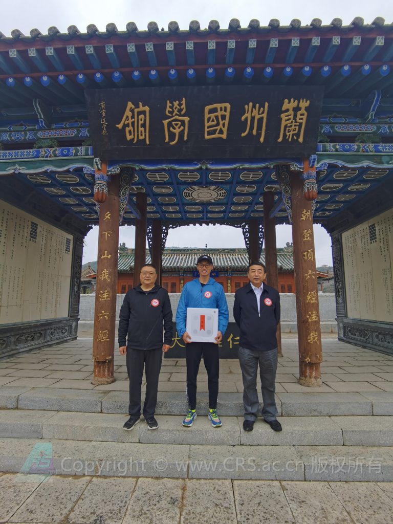 2021年4月24日,在九三学社甘肃省委员会青年工作委员会开展的以“弘扬五四精神·勇担九三使命”为主题的健步走活动中,我站朱小凡助理研究员获一等奖,九三学社甘肃省副主委、兰州市副市长戈银生在兰州国学馆为他颁奖。戈银生副市长(右一)为朱小凡颁奖 2021年4月24日,在九三学社甘肃省委员会青年工作委员会开展的以“弘扬五四精神·勇担九三使命”为主题的健步走活动中,我站朱小凡助理研究员获一等奖,九三学社甘肃省副主委、兰州市副市长戈银生在兰州国学馆为他颁奖。戈银生副市长(右一)为朱小凡颁奖