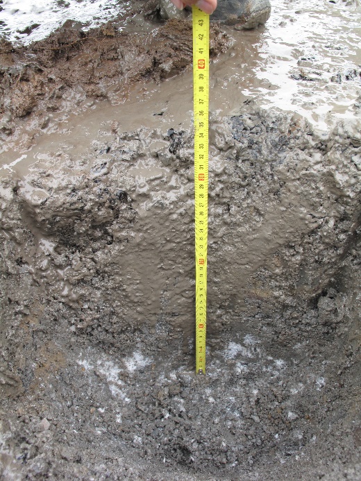 2018年9月1日上午,中国科学院冰冻圈科学国家重点实验室青藏高原冰冻圈观测研究站科考队赶赴滑塌现场开展科学考察,科研人员利用无人机、探地雷达、土壤探坑等技术手段对滑塌现场进行了考察和评估,并布设了固定剖面进行监测。