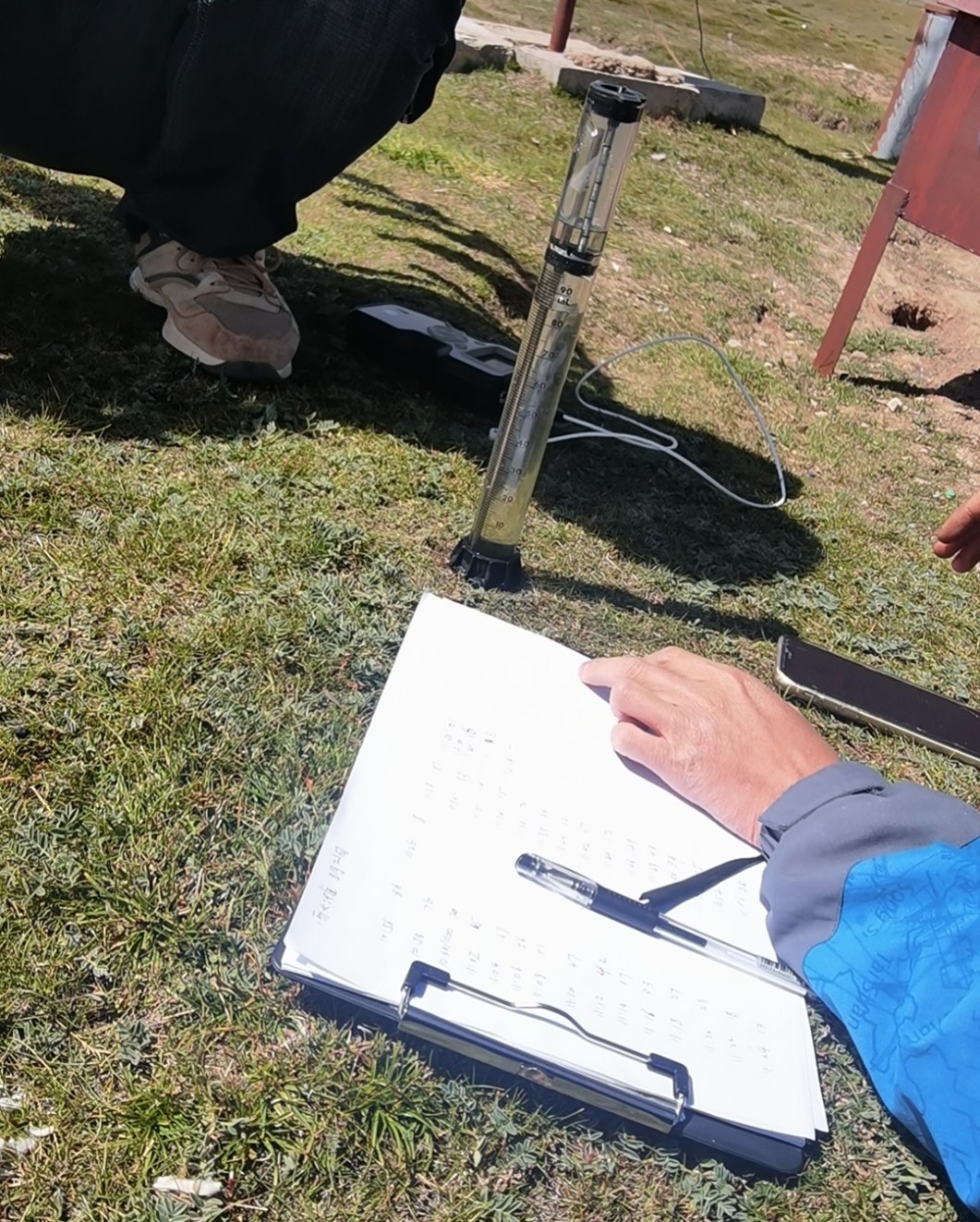为了更好地认识青藏高原高海拔多年冻土区的土壤水热过程,2023年8月18日至9月19日我站李韧研究员、肖瑶助理研究员、博士研究生焦永亮和王申宁等人在西大滩多年冻土区开展了为期一个月的土壤水热特征参数连续原位观测及土壤样品采集工作。该野外工作旨在深入探究多年冻土区活动层土壤水热过程机理和动态变化规律,获取准确的活动层土壤水热特征参数,为寒区陆面过程模型改进和优化提供数据支持。