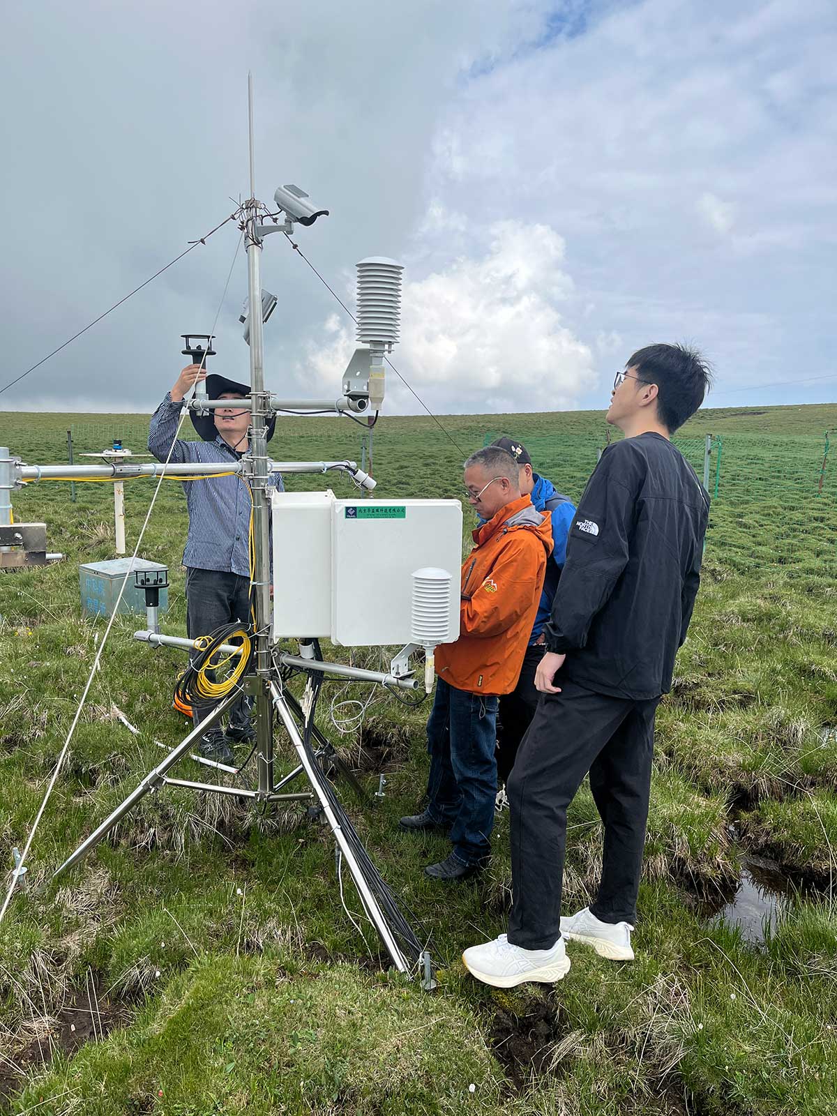 2024年7月3日,我站乔永平副站长,王武助理研究员、娄佩卿博士研究生和白俊强硕士研究生一行4人共同完成了对甘肃省兰州市榆中县与临洮县交界处马衔山的多年冻土观测设备维护和布设工作,包括地表温度观测网的布设、冻胀草丘的详细调查、定位观测数据的采集以及仪器的维护。