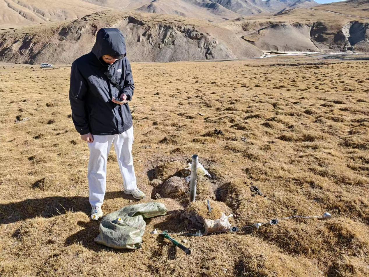 此次野外工作重点获取了自2023年设备布设以来连续两年的地表温度监测数据。经数据分析与检查,数据质量良好、连续性高,有效记录了黄河源区多年冻土活动层和浅层地温的年际变化过程。这些连续观测资料不仅有助于揭示该区域冻土发育的动态特征及地表形变规律,还将为评估黄河源区多年冻土退化对高寒草原水文生态和基础设施的影响提供关键数据支撑。