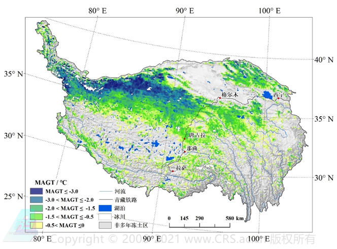 图1 青藏高原多年冻土区年平均地温(MAGT)的空间分布特征