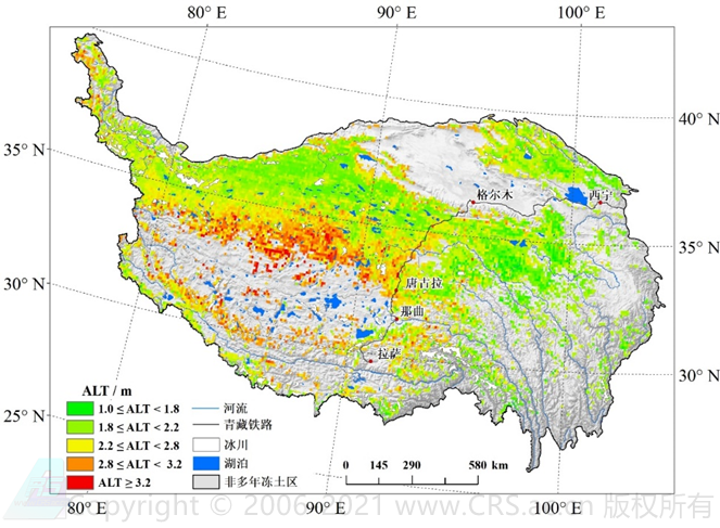 图2 青藏高原多年冻土区活动层厚度(ALT)的空间分布特征