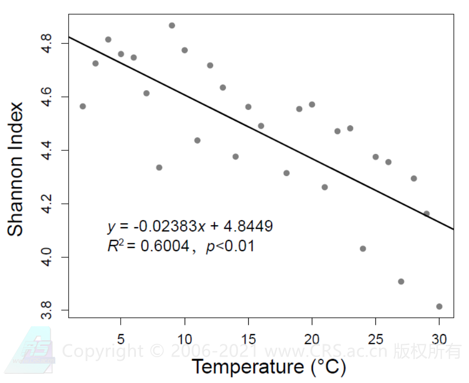 环北极多年冻土区中储存着大量有机碳,约为当前大气中碳储量的二倍。全球变暖背景下,北极地区多年冻土升温和退化加快。多年冻土退化过程中有机碳被微生物分解后以温室气体的形式排放至大气中,从而进一步加剧气候变暖。在冻土碳反馈过程中,微生物的群落结构和功能对升温的响应特征和规律对评估多年冻土区碳排放的影响具有重要意义。尽管已有一些研究探讨了微生物对温度或温度梯度的响应特征,但微生物群落中物种丰度与温度相关关系的评估还存在不确定性。