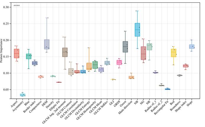 研究发现,面向对象技术比基于像元技术更适用于热融滑塌识别。基于递归特征消除的特征选择证明纹理和形状等空间信息是对热融滑塌识别的有效补充(图1)。在改进的面向对象机器学习模型中,支持向量机(SVM)的识别精度最高,总体精度为93.06%。 McNemar检验证明,与单一模型相比,EOTSR显著提高了热融滑塌识别能力,总体精度达到97.32%(图2)。本研究提出的集成机器学习方法的EOTSR模型为青藏高原和北极多年冻土区日益频繁的热融滑塌事件提供了有效的识别方法,可以为基于卫星图像的深度学习模型制作标签数据。