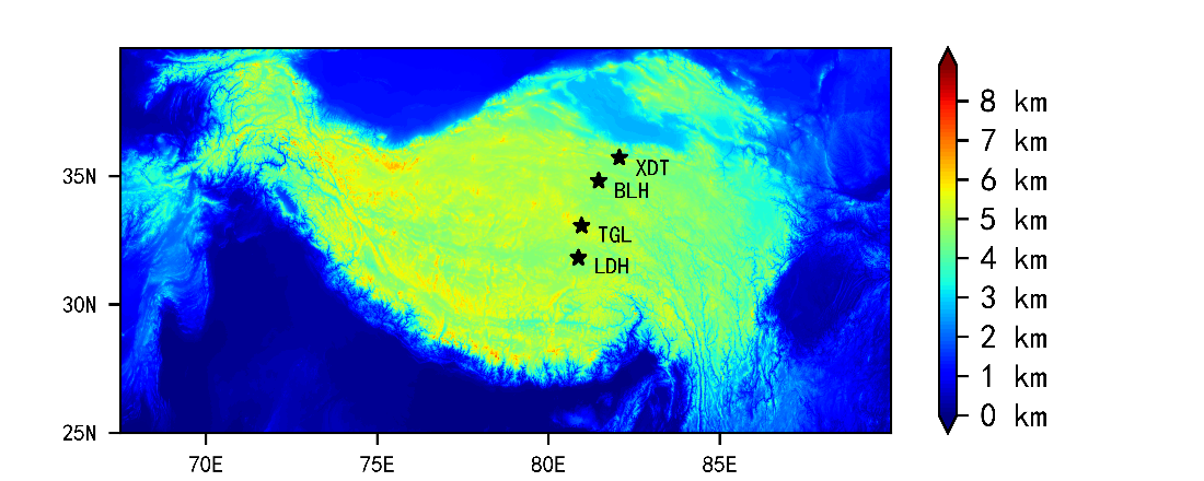 地气间能量收支是气候系统的主要驱动力,对气候变化有着重要影响。在全球变暖背景下,青藏高原多年冻土发生了不同程度的退化,导致地表能量收支及陆气间能水交换发生了变化,这将对生态环境及气候系统产生重要影响。相比于站点观测和再分析数据,陆面模式提供了一种更为便捷有效的方式来研究青藏高原陆面过程。CLM模式是目前应用最为广泛的陆面模式之一,CLM5.0作为CLM的最新版本,其模拟性能相比于之前版本已有较大提高。然而由于青藏高原多年冻土区涡动观测数据稀缺,有关CLM5.0在该区域地表能量收支的模拟性能还鲜有研究,针对多年冻土区地表能水交换参数化方案的改进还需进一步探索。