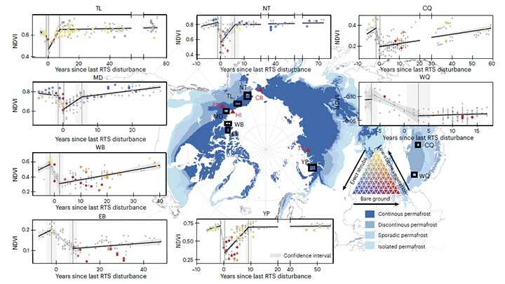 北半球多年冻土区是全球气候系统和陆地碳循环的重要组成部分,但在持续气候变暖背景下,富冰多年冻土广泛退化并诱发“溯源型热融滑塌”(RTS),导致地表失稳、植被剥离及大量土壤碳释放,对生态系统稳定性和碳收支产生深远影响。尽管该类扰动近年来在北极及青藏高原等区域显著增加,但植被恢复的时间尺度及其空间差异仍...